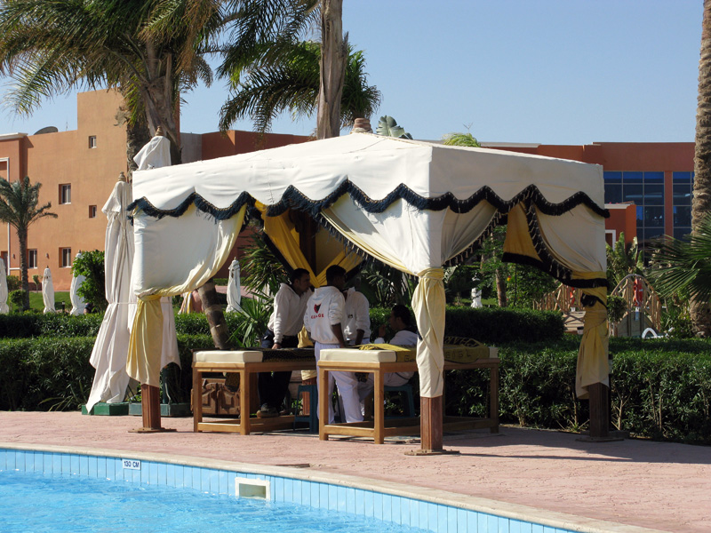 Кухня в гостиннице нормальная, обслуживание нормальное, есть персонал, говорящий по-русски, русскоязычные массовики-затейники. Свой бар (10 баксов зависание на 24 часа, местные напитки включены, импортные - за отдельную плату), свой итальянский ресторан (питание в нем тоже входит в стоимость путевки), на территории пляжа есть рыбный ресторан - он платный. Претензий к гостиннице нет никаких. Единственное неудобство, что отель не имеет своего пандуса для выхода на риф, но имеет договор с отелем справа (если смотреть на море) о пользовании его пандусом, а на пандус гостинницы справа (это тот, который на фото в предыдущем посте) одна смена охраны пускала без проблем, а вторая - закатывала истерики.