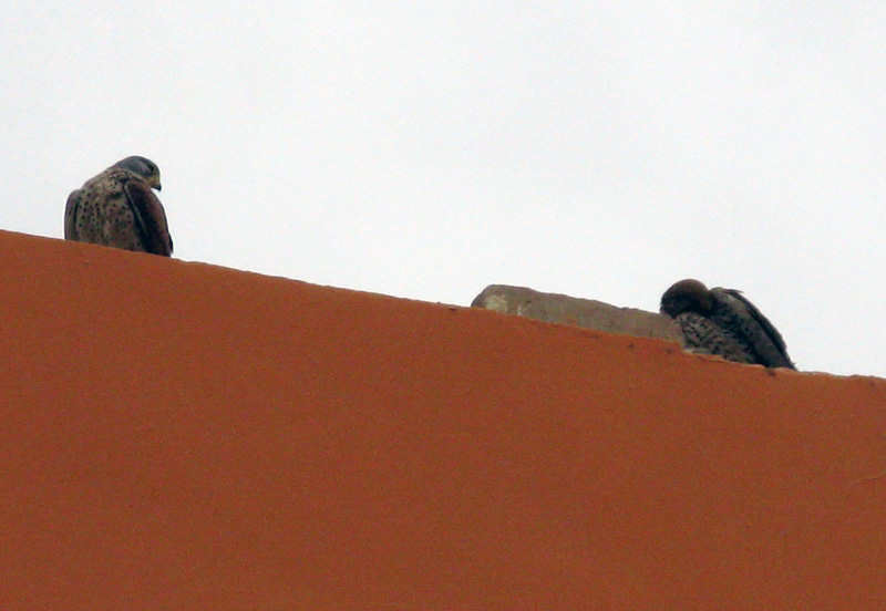 Фото 17: Это пара египетских соколов. Они нас встречали, когда мы приехали, вот так же сидя на парапете здания гостинницы. Мне было не до них и я их не сфотографировал, но на третий день (видя как они периодически пролетают над отелем, появилась мысль попытаться их отснять... На следующие 3 дня они пропали. За день до отъезда иду с обеда, смотрю самка сидит на фонарном столбе далеко и против солнца. Попытался навестись - на пределе увеличения едва можно по силуету определить принадлежность к отряду... Раздосадованно выключаю фотоаппарат, поворачиваюсь и успеваю сделать пару шагов до того, как сзади раздается соколиный крик... Я так понимаю, что она меня специально позвала, чтоб надо мной поиздеваться (иначе зачем было кричать, учитывая последующие события)...