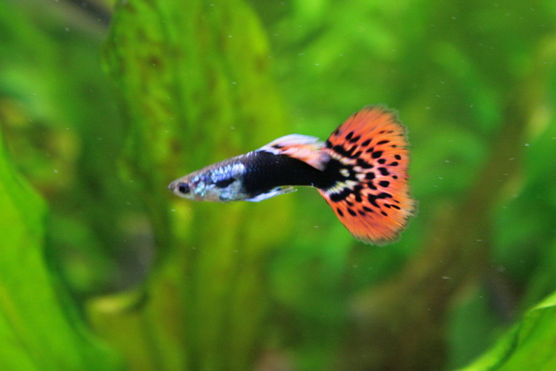 гуппи получерные красножелтые ковровые(испанци) -15 грн. за хвостик