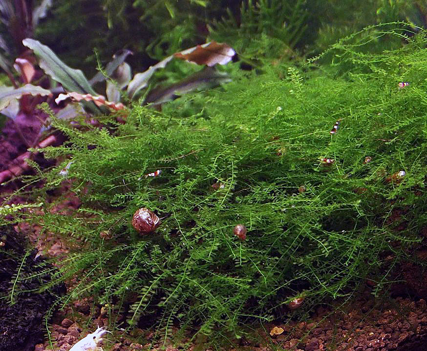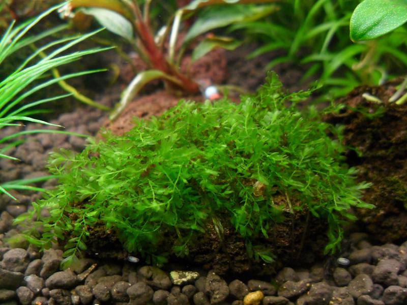 Просто зацепил сеткой за камень, чтобы не "летал" по аквариуму. Очень красивый и необычный мох.