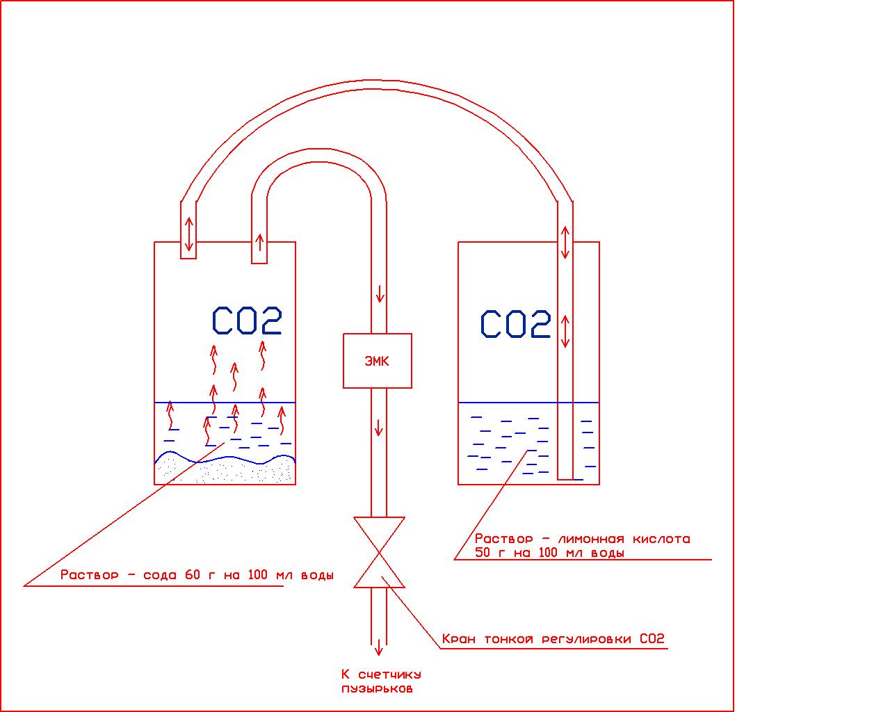 Блуждая по интернету в поисках безопасного и самого дешевого способа подачи СО2, наткнулся на одну очень интересную и простую систему http://www.forum.aquastatus.ru/viewt...p=53024#p53024. (смотри фото)
