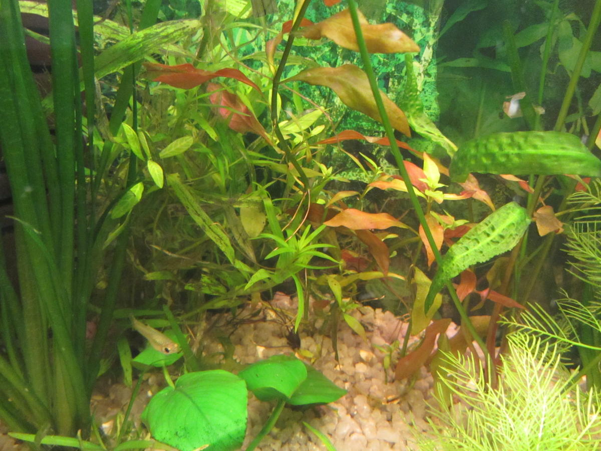 1.Аквариум 35л, живёт на одной энергосберегалке 15в с температурой 4100,световой день 8-10часов,после посадки добавляются УДО от Рыбачок по схеме