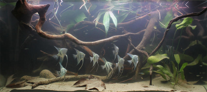 Да гемора намного меньше, папоротник хоть как то но жрет нитраты и фосфаты, водоросли на корягах выглядят естественнее, вернее коряги не теряют внешний вид. Песок, его поперемещал и он как новый (сейчас крупная белая галька, которая зарастает как камень). Листья катапанга частично будут закрывать песок, что предотвратит его зарастание и листья создадут некий хаос на дне, типа природного.