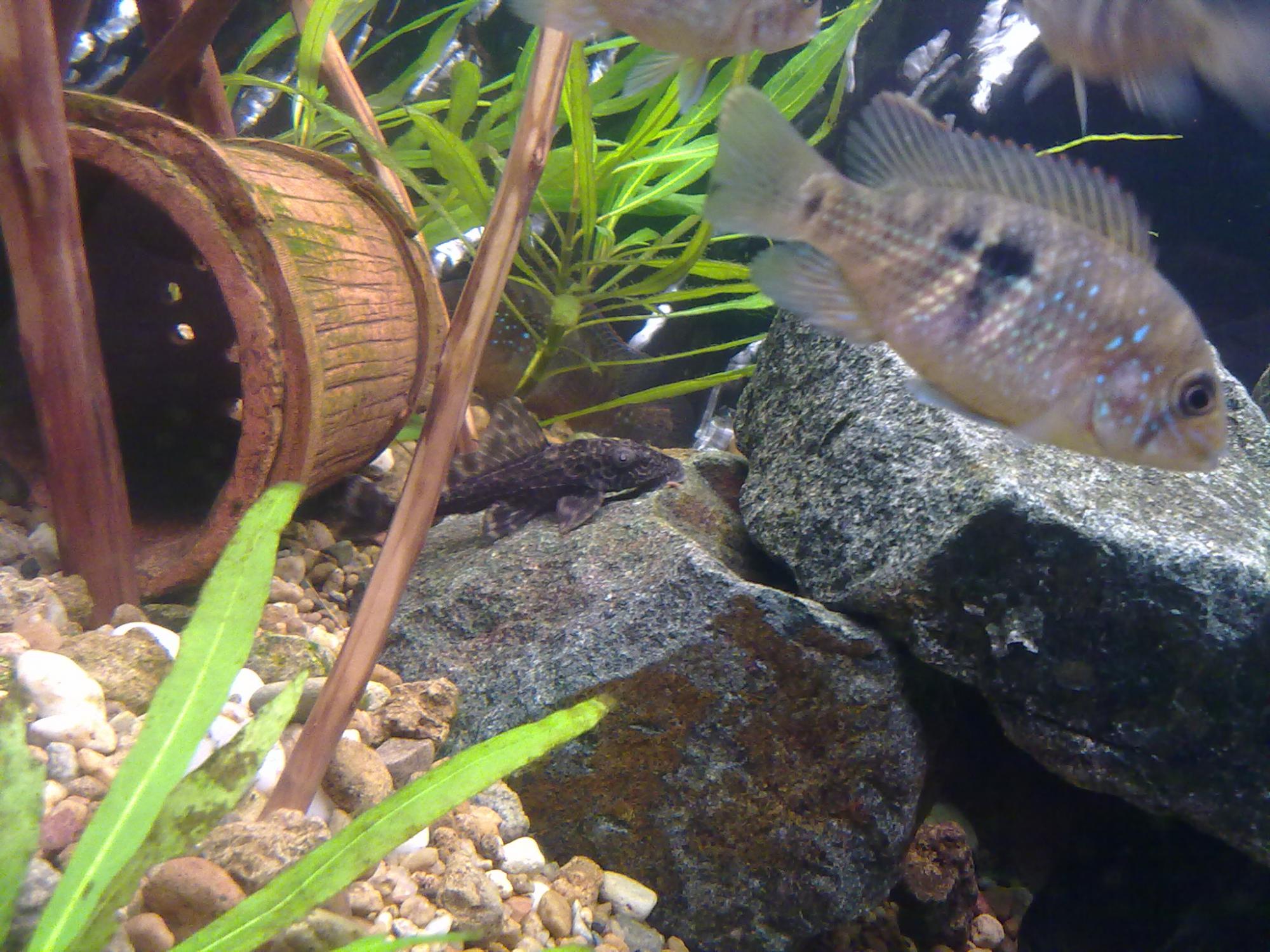 Щас у сома окрас такой что он не похож на Pterygoplichthys (Liposarcus) pardalis, а скорей всего на парчевого, хотя плавник не такой.