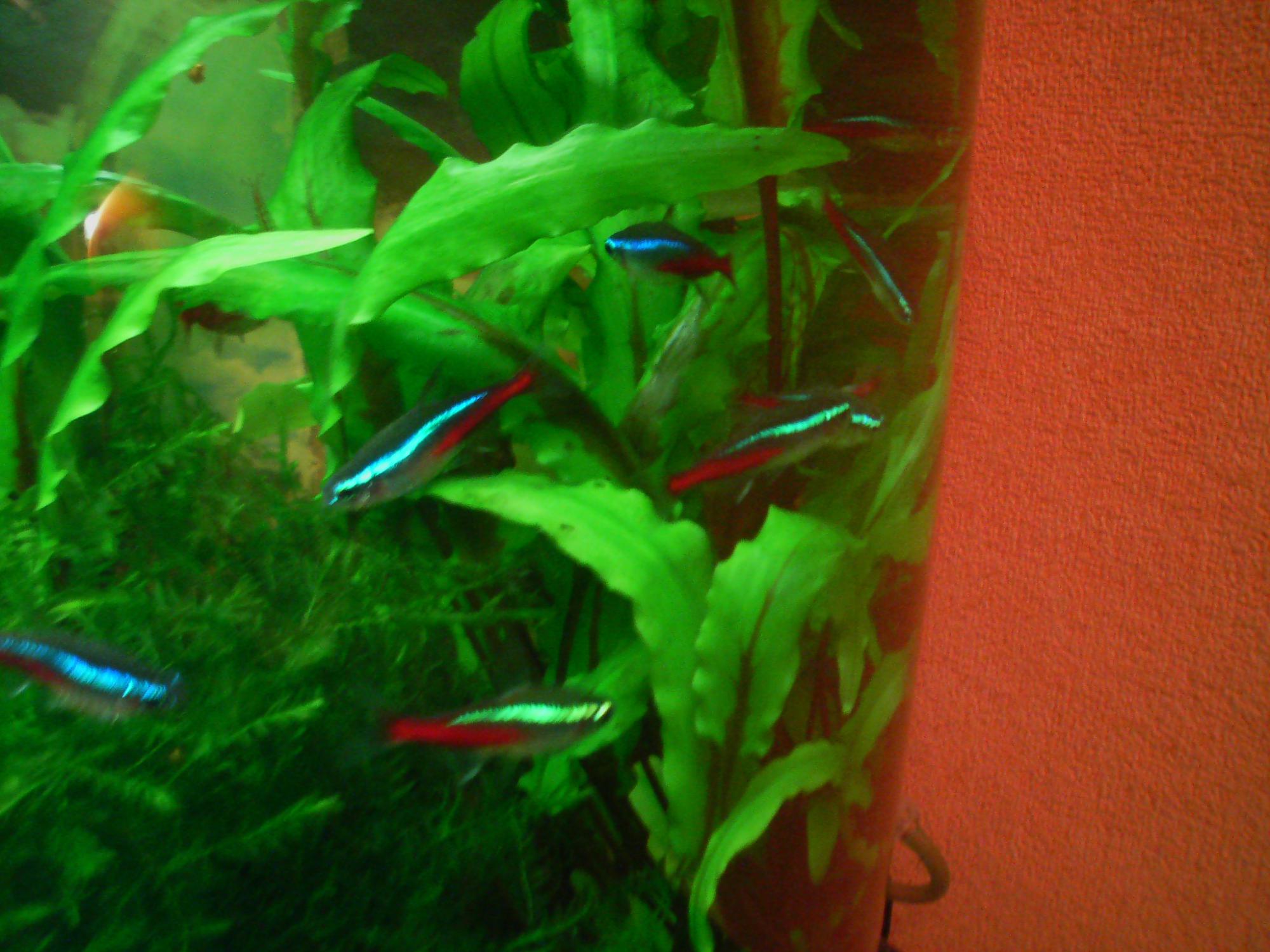 Жили 4 брилиантовых тетры- так они мне черриков так покушали-мама не горюй! Живут 3 пандочки-мои любимчики. Пока наверное остановлюсь. Подумываю про неончиков  Насчет камешка-уже думала надо виллоу проредить. А камешек стал просто сказачно красивым- кладофора заросла идеально как настоющий мох на камнях.