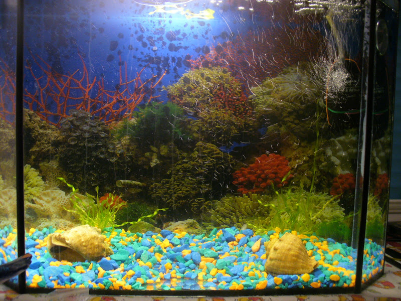 ситуация: 30 л, 30 см, стекло, запущен только что (если запущен); лампа накаливания 15 Вт; фильтр aquael fan mikro; освещение естественное, плюс часа 3 вечером, для красоты; температура 30; два каких-то кустика из прошлого аквариума.