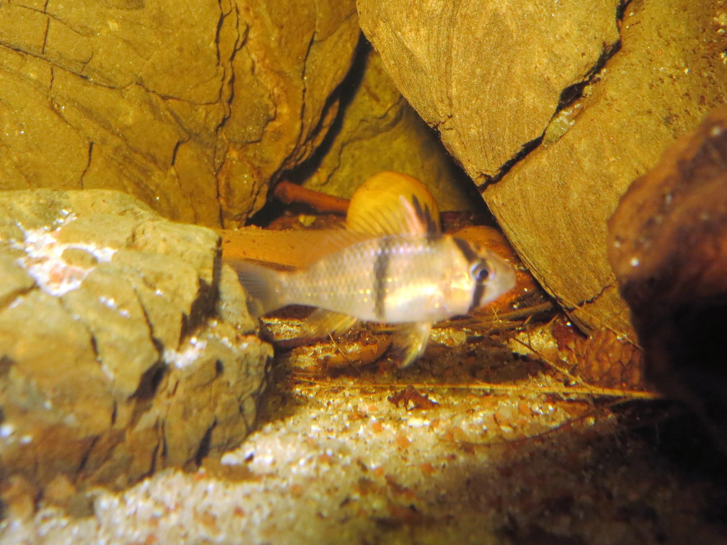 Сегодня выкладываю фото своего первенца. Потому как остался один из первого помета.Выжил в общем аквариуме.Сейчас размер 2 см и возраст 2 месяца (первых поплывших мальков увидел 05.03.17. Активный, любопытный и уже "строит " Тетр. Наверное-пацан! Кстати по окрасу-совсем не похож на родителей-ну может чуть-чуть.