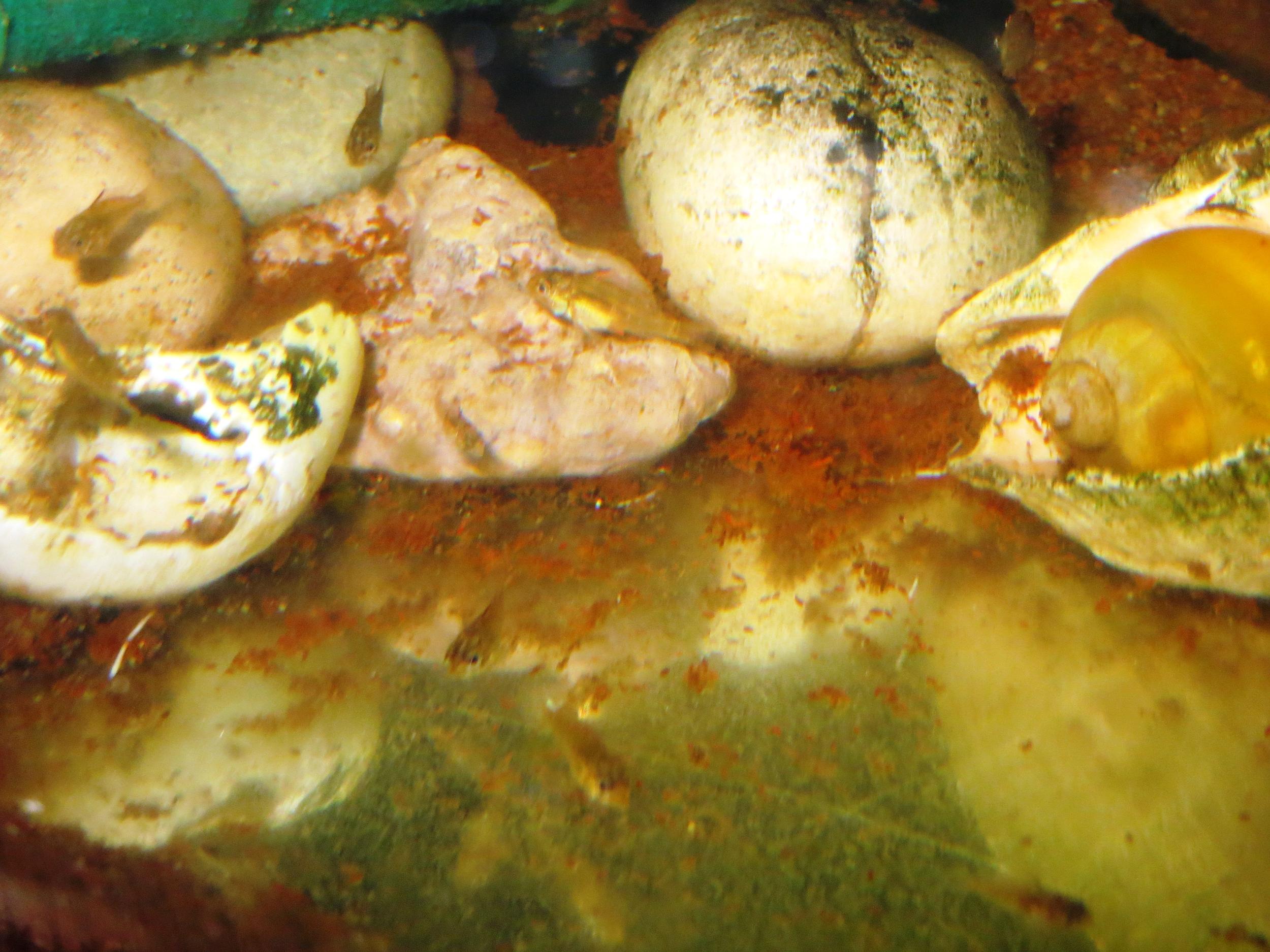 А это фото бдительной мамашки-наверное опять решили нерестится,все время прячется. И малышня с двух выводков с недельной разницей.