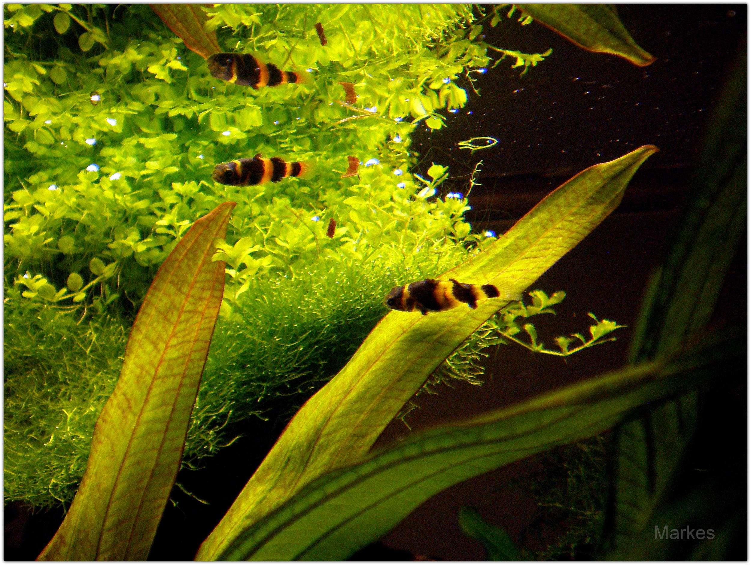 Смотрятся действительно интересно. Особенно когда они на листиках лежат))).Но основное время их не видно))) Где-то прячутся. На кормление, и включение света, подмену воды выплывают. Рыбы их не обижают. Креветок(малька) могут поесть .