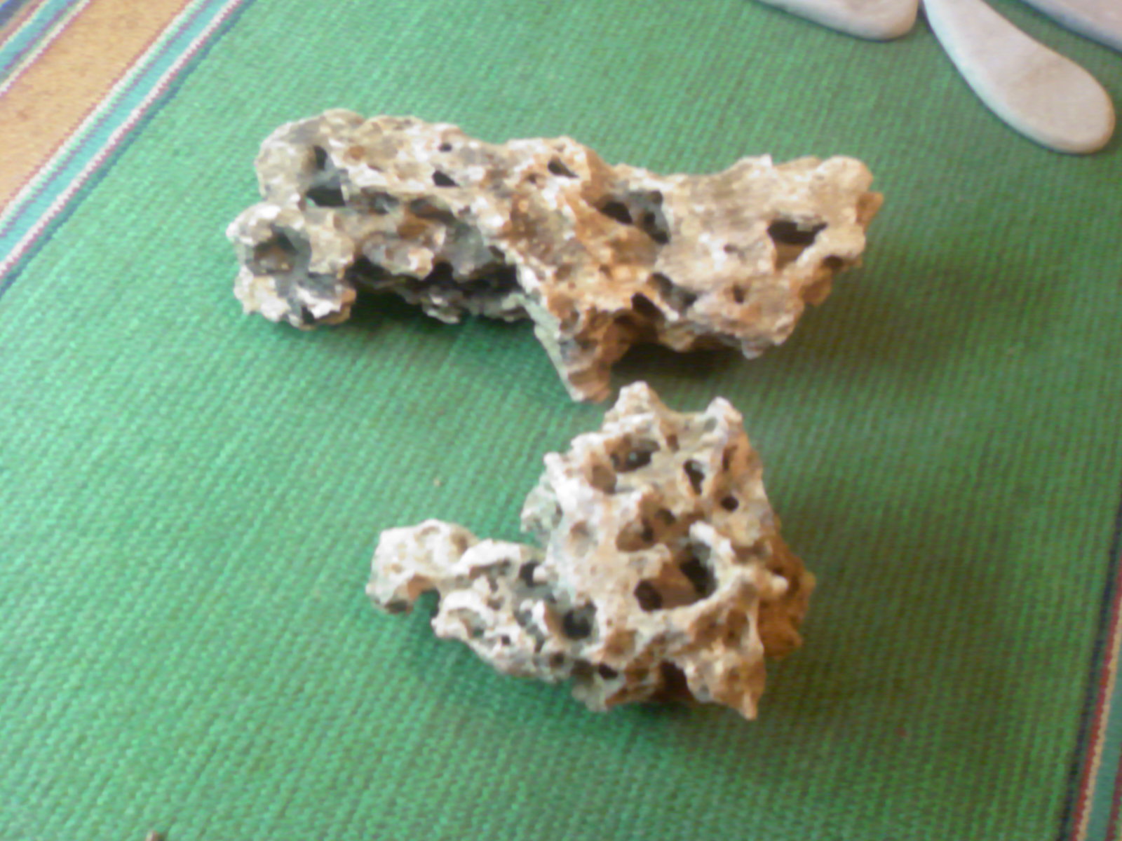 Это морской камень, по- моему песчанник (какой-то его вид). У меня такой в акве с черепахой (в моём альбоме есть фото). Такой камень в акву с растениями и рыбой лючше не совать. Те примеси морской воды, которые есть в нём, для пресной воды не самое лучшее. Как минимум может (НО НЕ ВСЕГДА!) мутить воду. Если на рынке или в магазине вам скажу, что ничего страшного - не доверяйте этим словам. Они и сами это знают плохо - что пришло, то и продают. А отговорка - у меня у самого такой лежит - не лучшее, что он вообще может сказать.