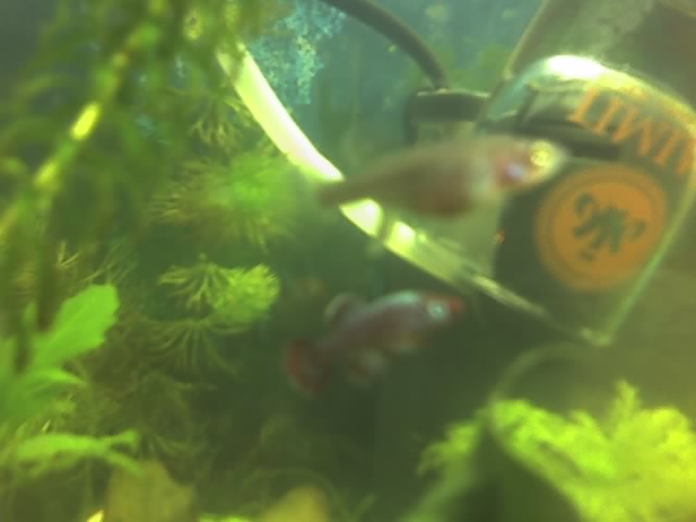 5. А дальше началось нечто невообразимое. Нет, они и раньше очень любили друг друга, но сегодня вечером...(Как в той песне:"Я ждала тебя, так ждала. И вот так ждала. И вот так ждала...")(Рис.3,4) Под фильтром, листьями эхинодорусов, под кокосом и на кокосе, в уголках (кстати, здесь впервые прозвучала благодарность за прямоугольную форму новой банки) - заснять не удалось, но общее впечатление есть.