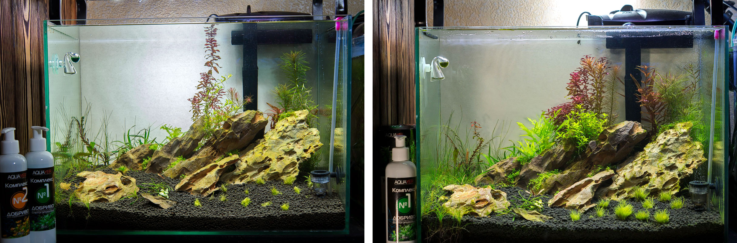 16 день жизни аквариума. Наверное будет уместно сравнить аквариум, каким он был в третий день запуска, когда расправились растения после посадки, и того аквариума, который мы имеем в данный момент.