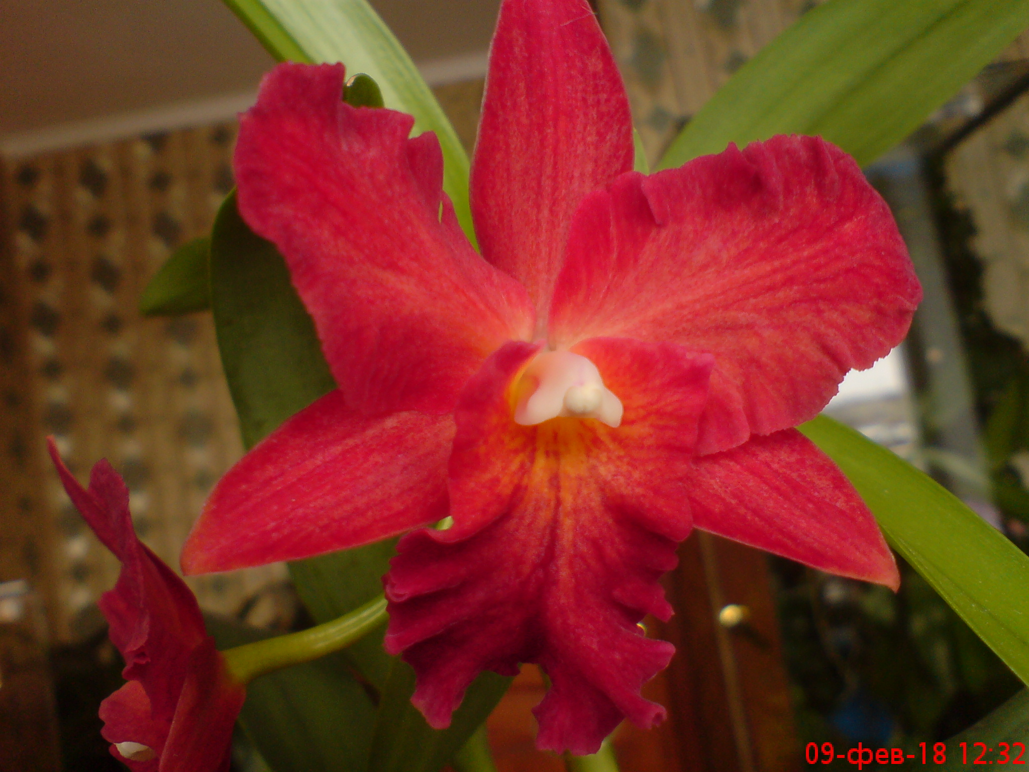 Мои красные каттлеи зашли на следующий круг цветения (напомню предыдущее цветение ноябрь-декабрь). Первая вот зацвела. Вторая растит бутоны скоро тоже покажу. ЗИМА. Окно северо-восток солнце никогда не попадает в окно с октября по апрель. БЕЗ ПОДСВЕЧИВАНИЯ. Цветов конечно меньше. на второй вроде будет цветов столько же как и было но еще не очень понятно.