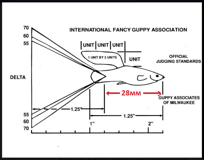 Главное - это стандарт . А стандарт - это не цвет , а размер , геометрия сложения , пропорции , и форма плавников . В идеале у длинноплавничных пород гуппи длинна корпуса до основания хвостового плавника 28 мм , один мм менее или боле наказываются при экспертизе . Хвостовой плавник должен иметь не только развал , но и длинну .