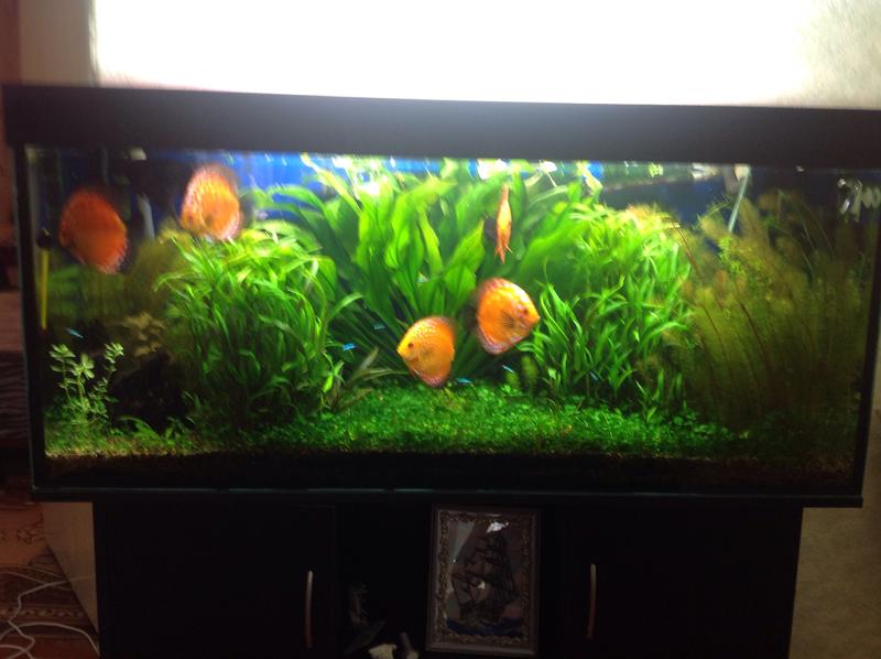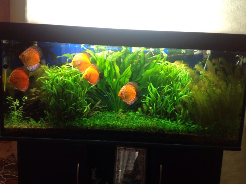 3 роки живуть в травнику нефорсованому (подачу СО2 пробував, але на вечір дискуси на верху плавали, перестав подавати). Купив ще малечі) Ніодин дискус не здох із-за рослин. Втрати були 4 шт, але із-за механічних пошкоджень( 2- пробували вискочити і стукнулися у покривне стікло( 2 - фільтром придавило внутрішнім( Вже таким і некористуюся. Вот такі фото зараз у мене. Акву запустив 1,5 місяця назад.