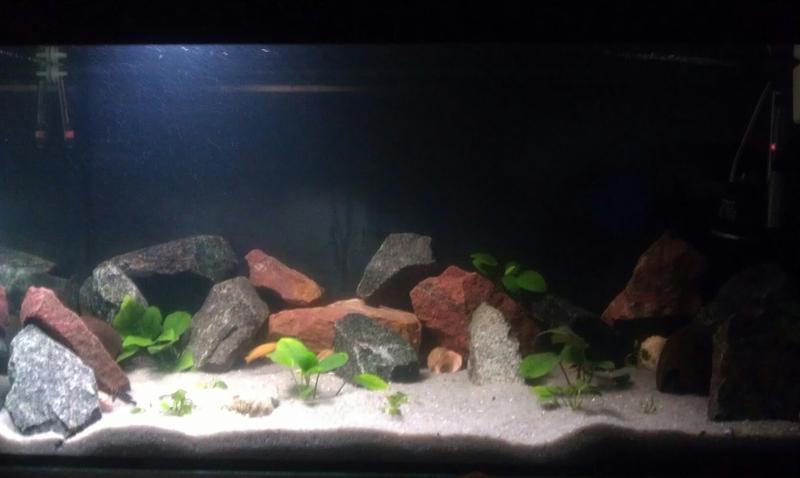 сегодня прибыли новые жильцы в количестве 5 рыб в 200 литровы й аквариум...завтра буду фон делать черным и пару камней добавлю..посмотрим что получится