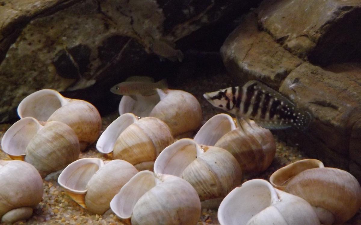 В сачке выпустил над раковинами. Все равно двое умудрились рвануть в сторону. Сидят недалеко, за камнями. Остальные уже поели моину вместе с кальвусами и обсматривают раковины.