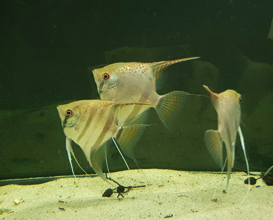 Самочувствие как недавно прибывших , так и суринамских скалярий нормальное.