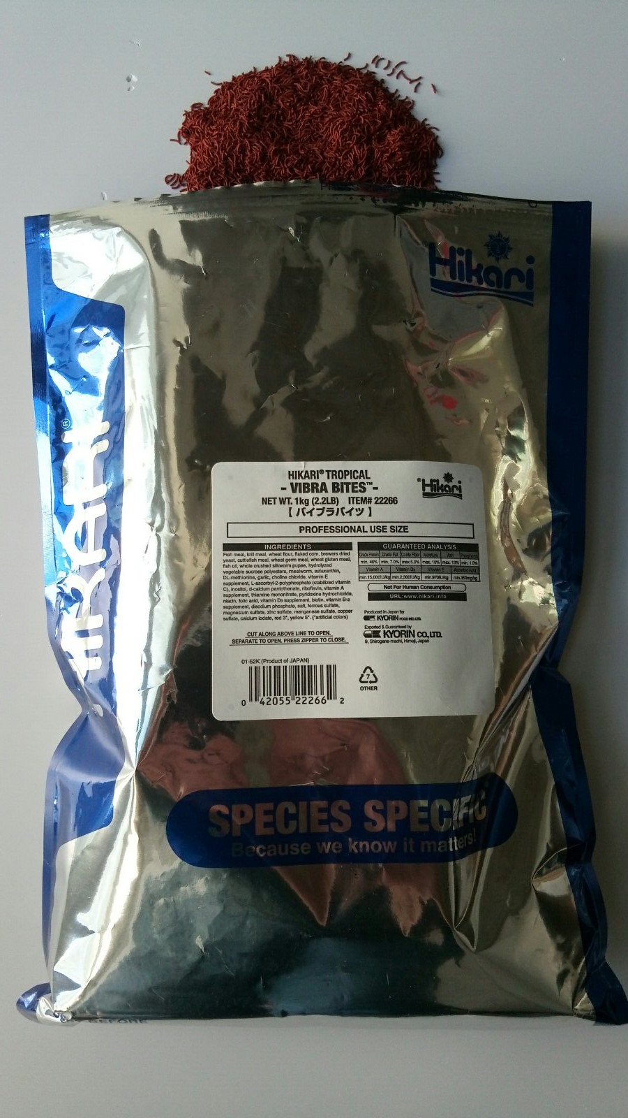 Многим нравится рыбка Тетрадон, но бояться покупать ибо рыбка отказывается есть сухие корма. В данном случае корм Hikari Vibra Bites идеальное решение он в форме червя (мотыля).