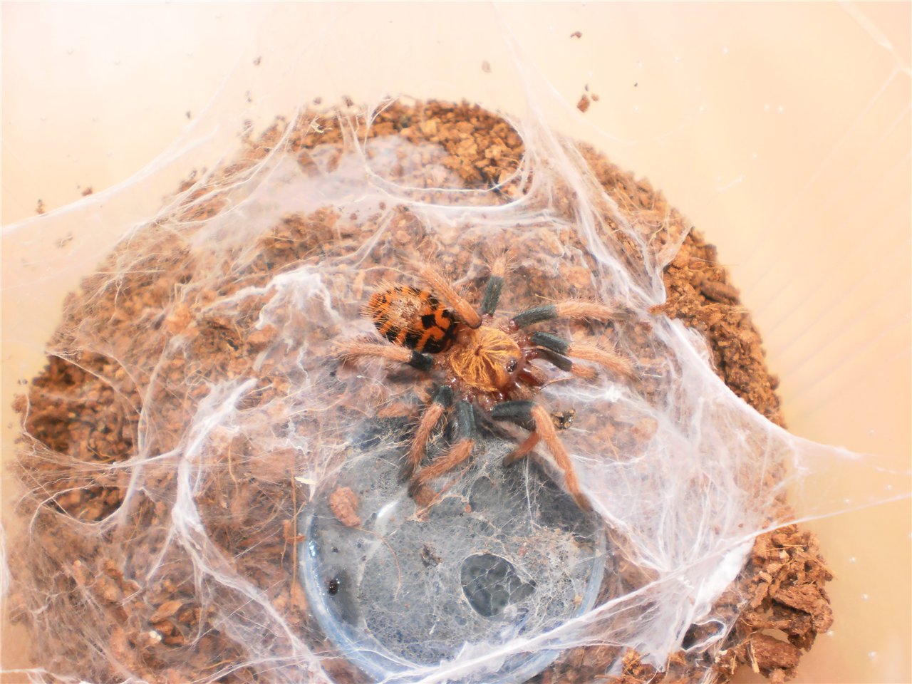 Примечание: Хроматопельма - "сухой" вид паука ,чрезмерное увлажнение может его убить . Плетёт очень много. Лучше держать без увлажнения грунта с поилкой.