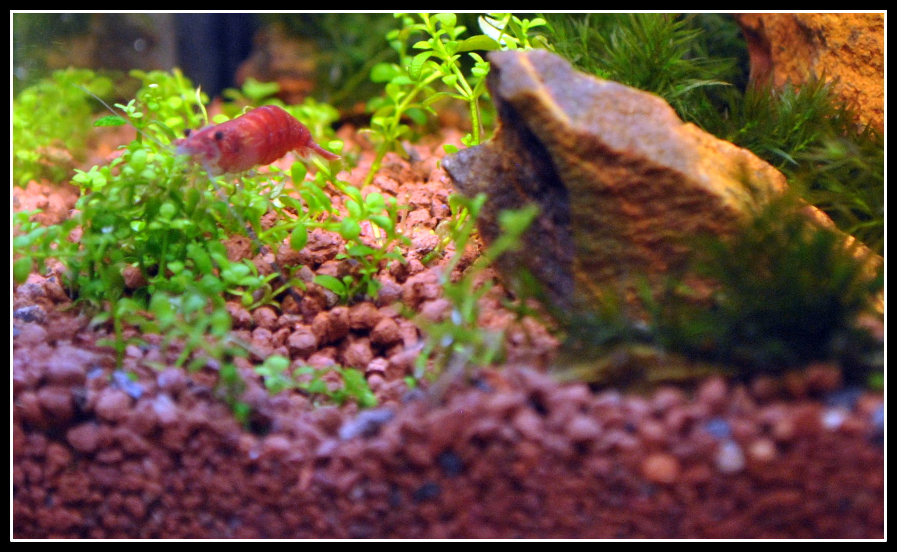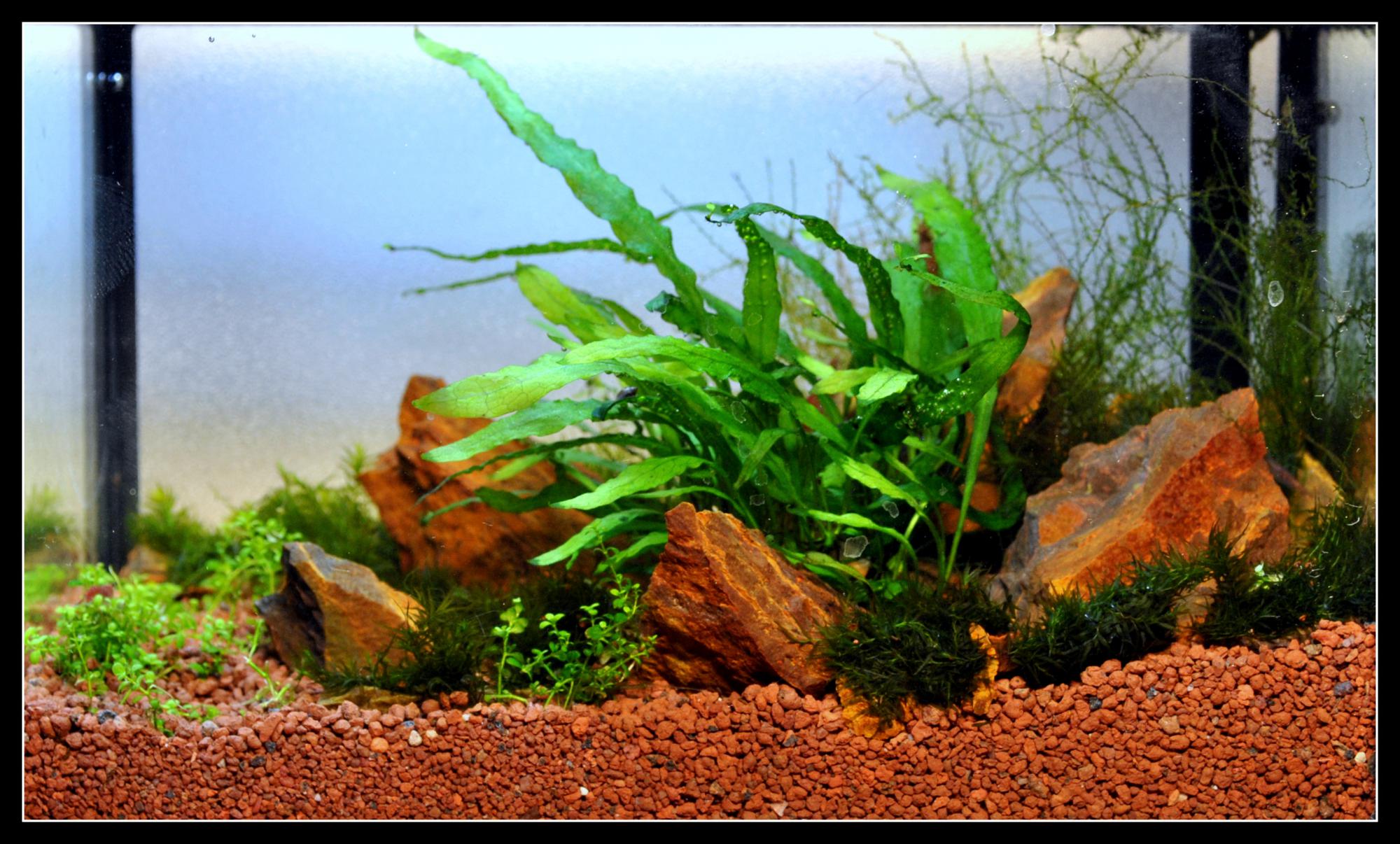 Та там грунта от 1 до 2 см  Опять же помпа в правом заднем углу - и от ее высоты тоже приходилось плясать  Черики благополучно своими лапками выдирают кубу, которая не успела укорениться....Чего-то не хватает, а чего не пойму...О, горе мне