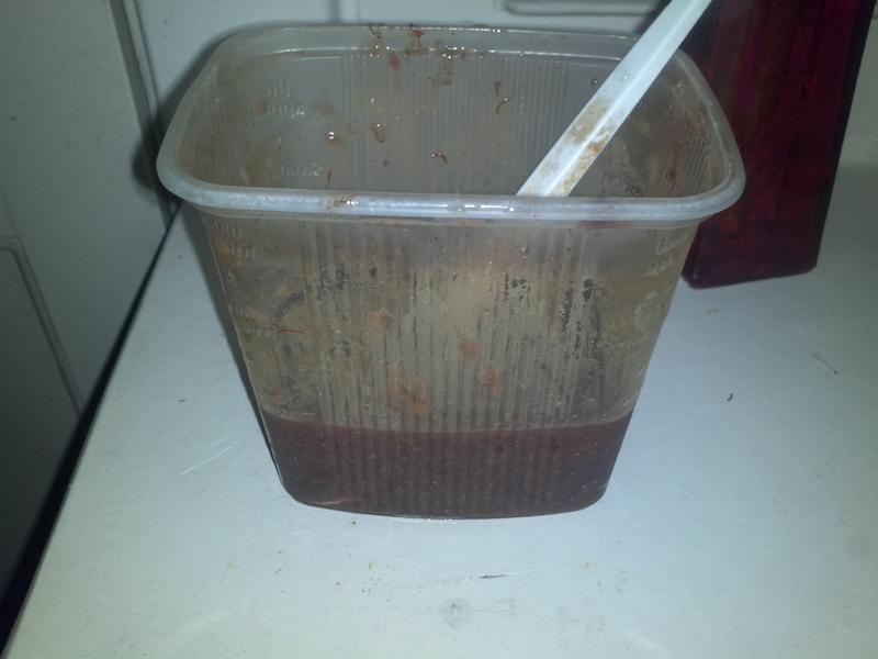 Специально в качестве эксперимента разморозил один брикет с артемией...результат видно на фото...в пластиковой коробочке так называемая "вода"... но водой это назвать нельзя, скорее сок или пюре)