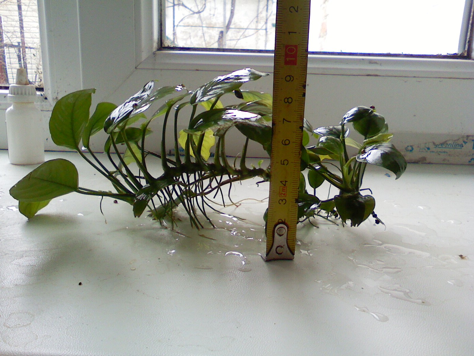 а чому в ануба листки жовтуваті на 2 фоткі з рулеткой,він хворіє?