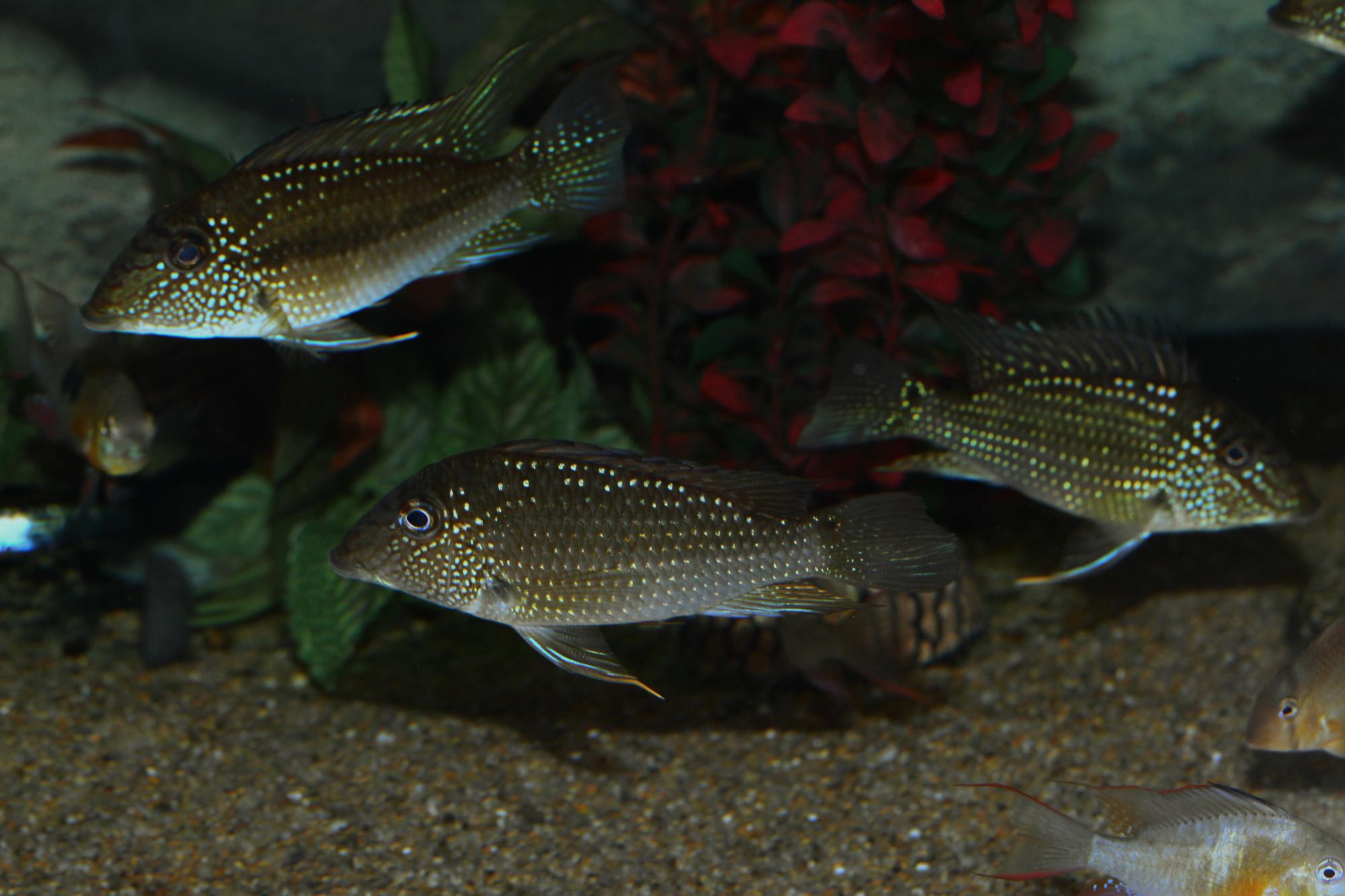 Сегодня купил двух Geo Surinamensis, 7см и 5см. Прикольно так, шустро плавают и песок муштруют. Точно суринаменсис, с черной точкой посредине туловища. Были не дорогие, по $6 штука.
