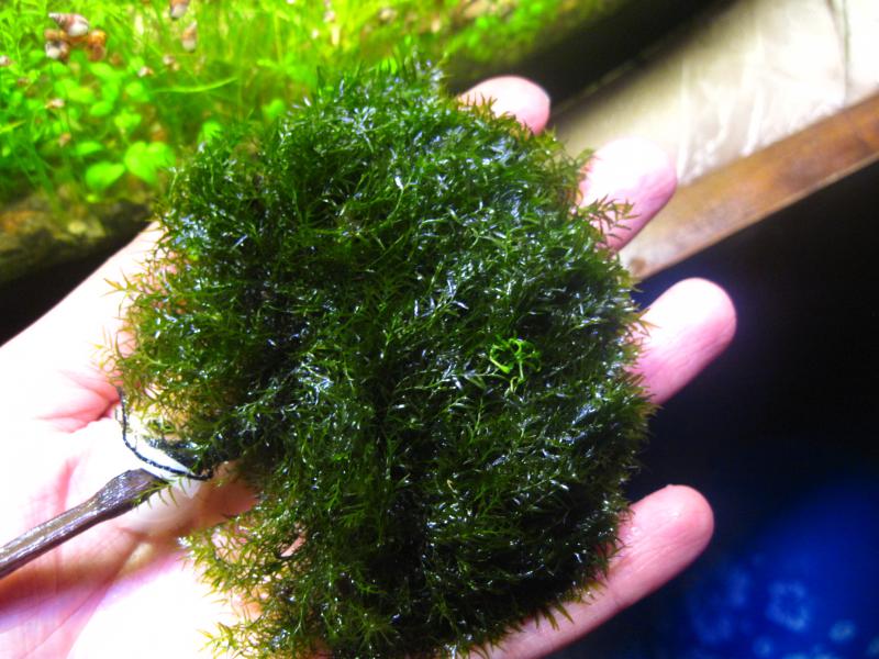 Fissidens fontanus. Шарик очень плотный, рос медленно в такой себе воде. Бонусом добавлю пару веток мха спайки.