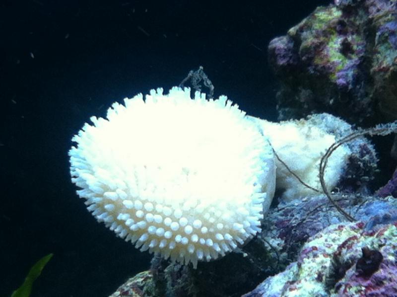 Пузырчатая актиния (кормлю пару раз в неделю креветкой) была белая как медуза, сейчас немножко позеленела да еще и поделилась - вроде тоже положительные тенденции