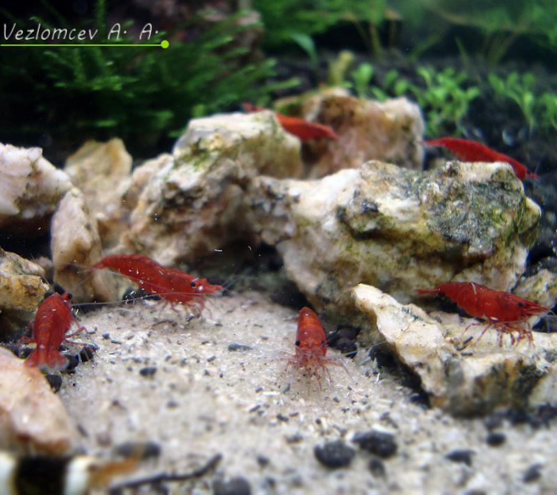 В жизни креветки намного ярче. Одинаковый окрас у самцов и самок, практически нет отличия. Прекрасно чувствуют себя в любых условиях. Станут украшением любому аквариуму.