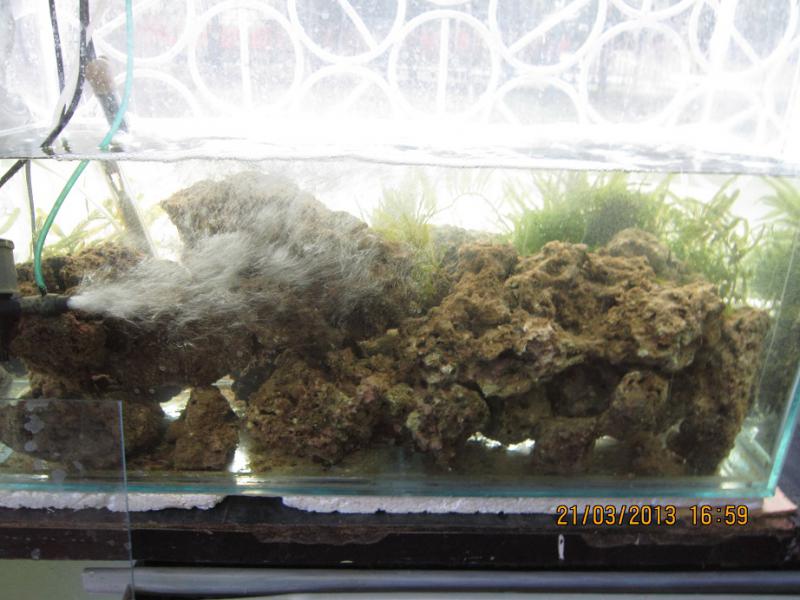 лчень много улиток водорослеедов сажайте туда и уф лампу ставьте но аккуратно с ней балуйтесь и холодильник мощный ставьте. может поможет.