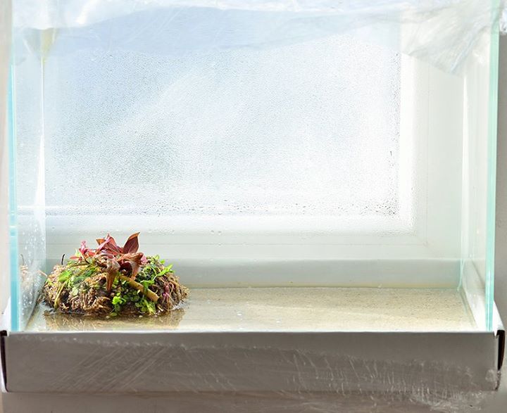 Вот такой вот палюдариум на базе wabi-kusa. "Вабикуса" самодельная. Рыбка - петушок. Из оборудования только помпочка Atman, которую включаю периодически для сбора ила.