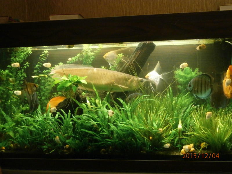Жители: Дискусы; Арована 26.02.2012 дата рождения (ориентировочно, разница +/- недели две); Анцитрусы; Скалярии; Черный нож.Изменений в параметрах и жителей аквы нет более полу года.