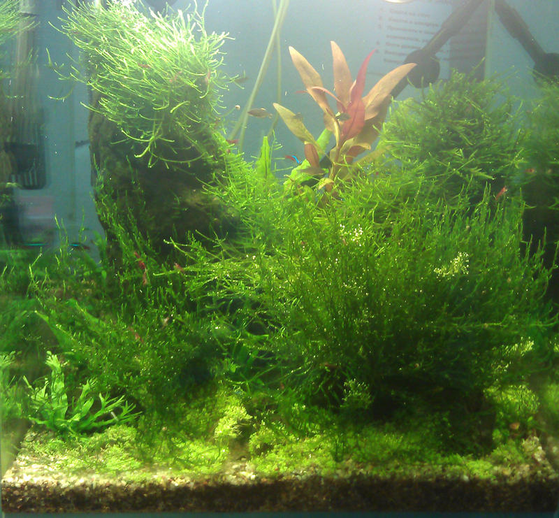 Так как я человек недоверчивый, проводить испытания субстрата на 400 литровой банке не стал, а запускал на работе кубик 40х40х45в- вот там и потестил.