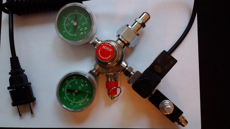 редуктор + электромагнитный клапан + кран тонкой регулировки подачи газа.