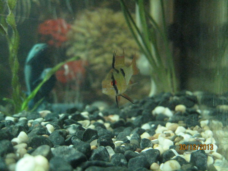 Купил пару рамирезок,но ещё маленьким,пол не возможно было определить,но самку точно выбрал,было розоватое брюшко. Сейчас такая ситуация,самка уже пузатая неделю плавает,а нереститься не хочет,отсадника нету,температуру поднимал,воду менял,никаких результатов!Может вторая рамирези тоже самка?Кидаю фотки...