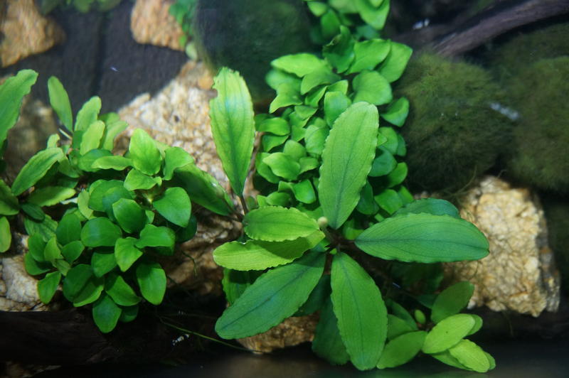 Растет в аквариуме без СО2, без УДО, на очень слабом диодном свете.