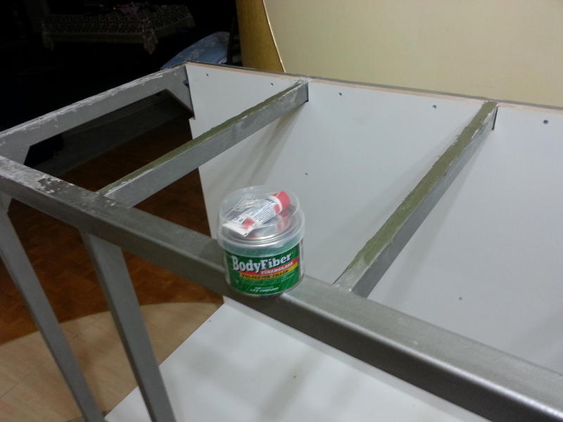 Крышка. Тоже из двухсторонне ламинированного мдф. Изнутри будет покрыто стеклотканью или капроновой тонкой сеткой пропитанный яхтным лаком.