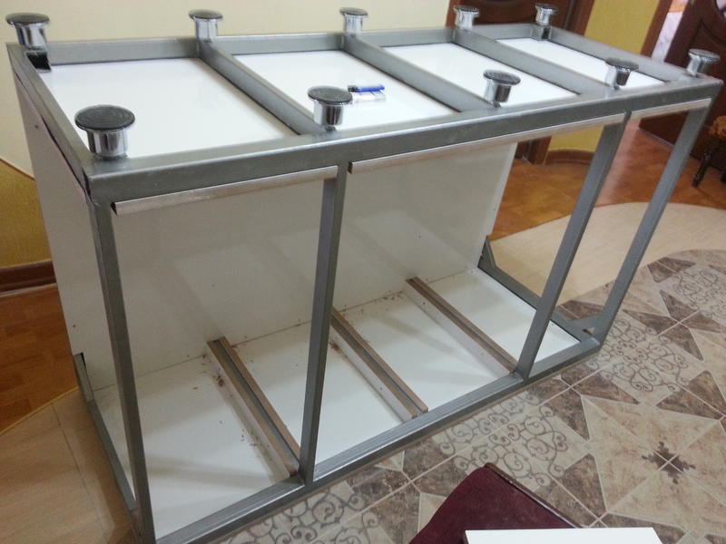 Как то незаметно начал новый проект на ~700 литров. Дисплей уже склеен 600x600x1500x12 мм. Планируется самп ~160л, металлокаркас тумбы в стадии покраски.