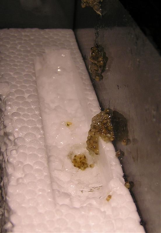 Просто у меня отложила икру прямо возле лампы. (похоже ночью, когда лампы холодные были). А днем, когда свет включен, в том месте достаточно тепло, даже жарко, градусов 40 точно есть.