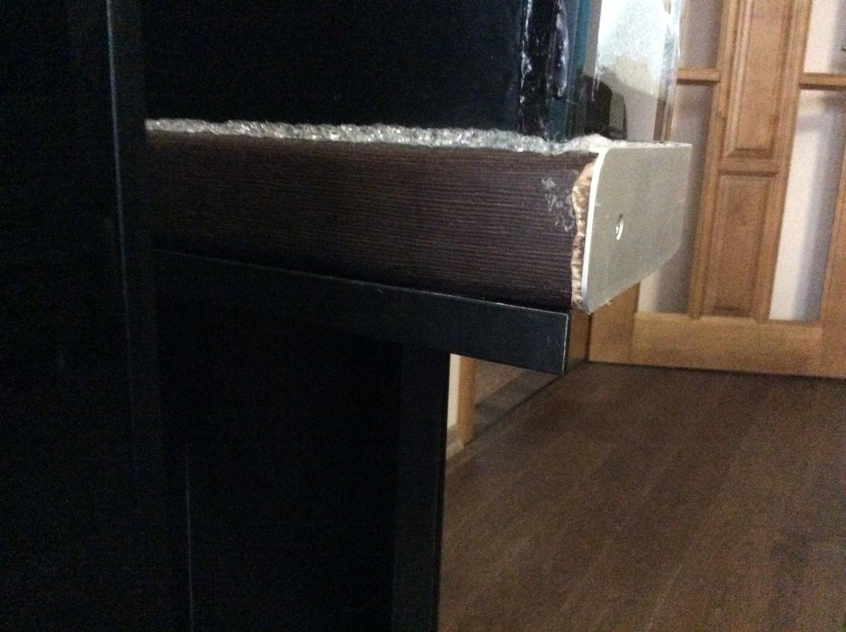 Единственная сложностью было придать этой каменной тумбочке пристойный вид снаружи, закрыть вид будущих фильтров и другого оборудования.После долгих поисков и размышлений была установлена раздвижная система из алюминия и стекла, как в стандартных шкафах купе. Очень удобно, не боится влаги и заказать можно на любом рынке у торгующих шкафами купе в любом цвете и с любым рисунком, или просто с зеркалом как у меня ( самый бюджетный вариант). Смонтировать ее на месте легко, у меня аква и столешница одной ширины, поэтому я крепил верхнею направляющею к боку столешницы, просверлил в ней сбоку сквозные дырки и закрутил саморезами в передний торец столешницы.