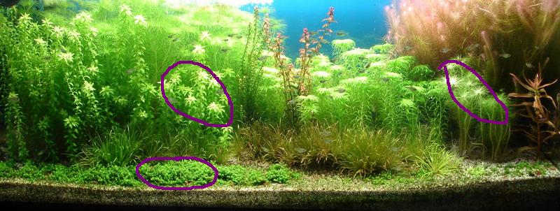 а розовое это ротала Валлиха. что есть сложное растение для содержания, и наличие его в таком количестве и таком качестве свидетельствуют либо о большом опыте владельца, либо о его большом достатке или о краткосрочных огромных вложениях в свой любимый аквариум )))))