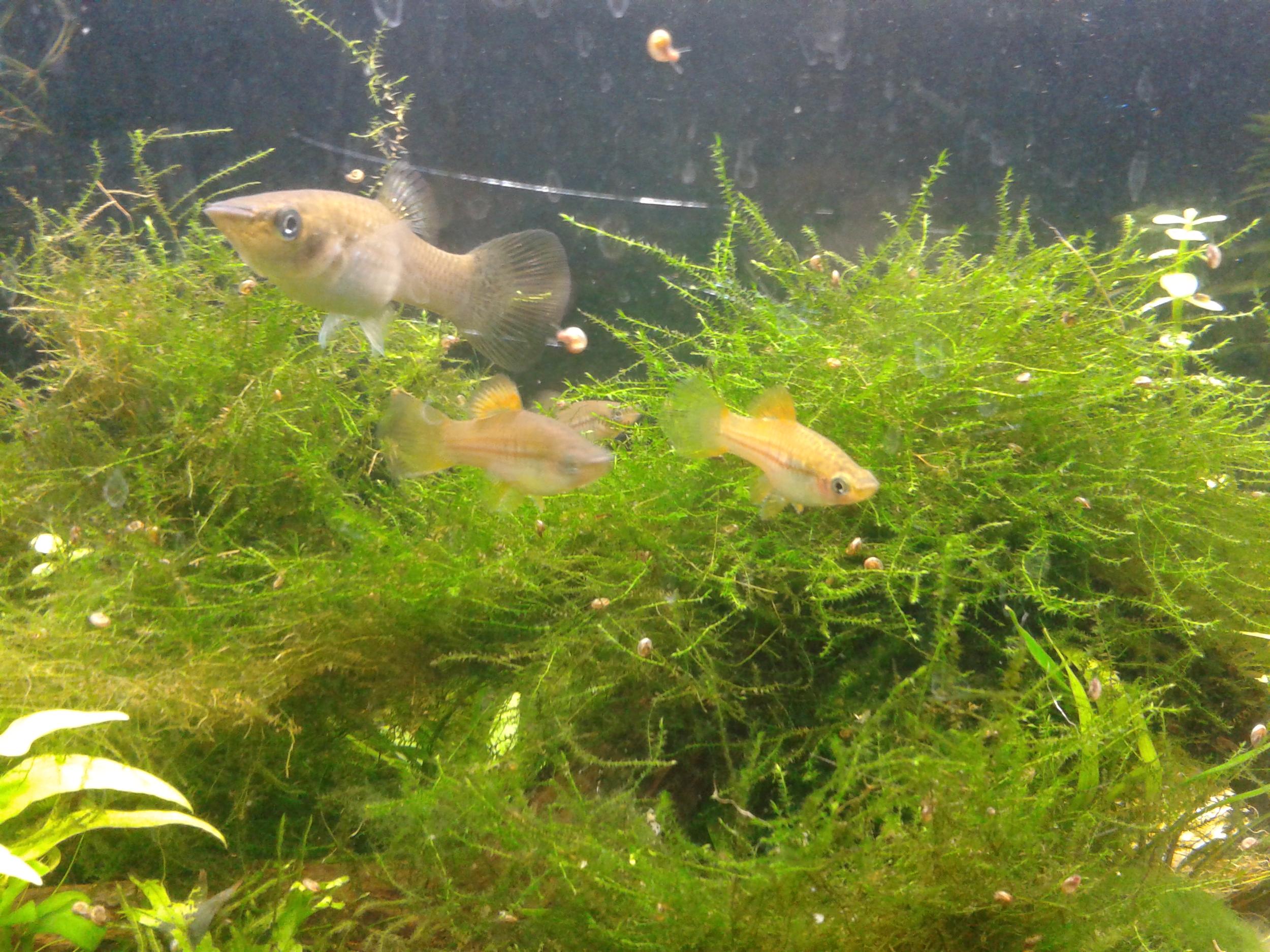 Есть на отдачу в добрые руки самка Зеленой Моллинезии (большая см 5-6) и три самочки Зеленого Меченосца (3-4 см) с красивыми оранжевыми хвостиками