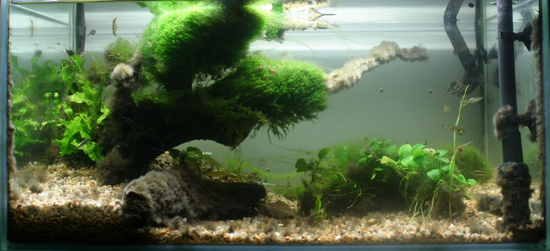 Итак, краткий экскурс. Аквариум запущен примерно год назад. Фотографии старта, к сожалению не сохранил. В течении 2 месяцев после старта аквариум жил полноценной жизнью: УДО, СО2, осмос, своевременные подмены... Затем 10 месяцев без всего этого,только доливал воду.