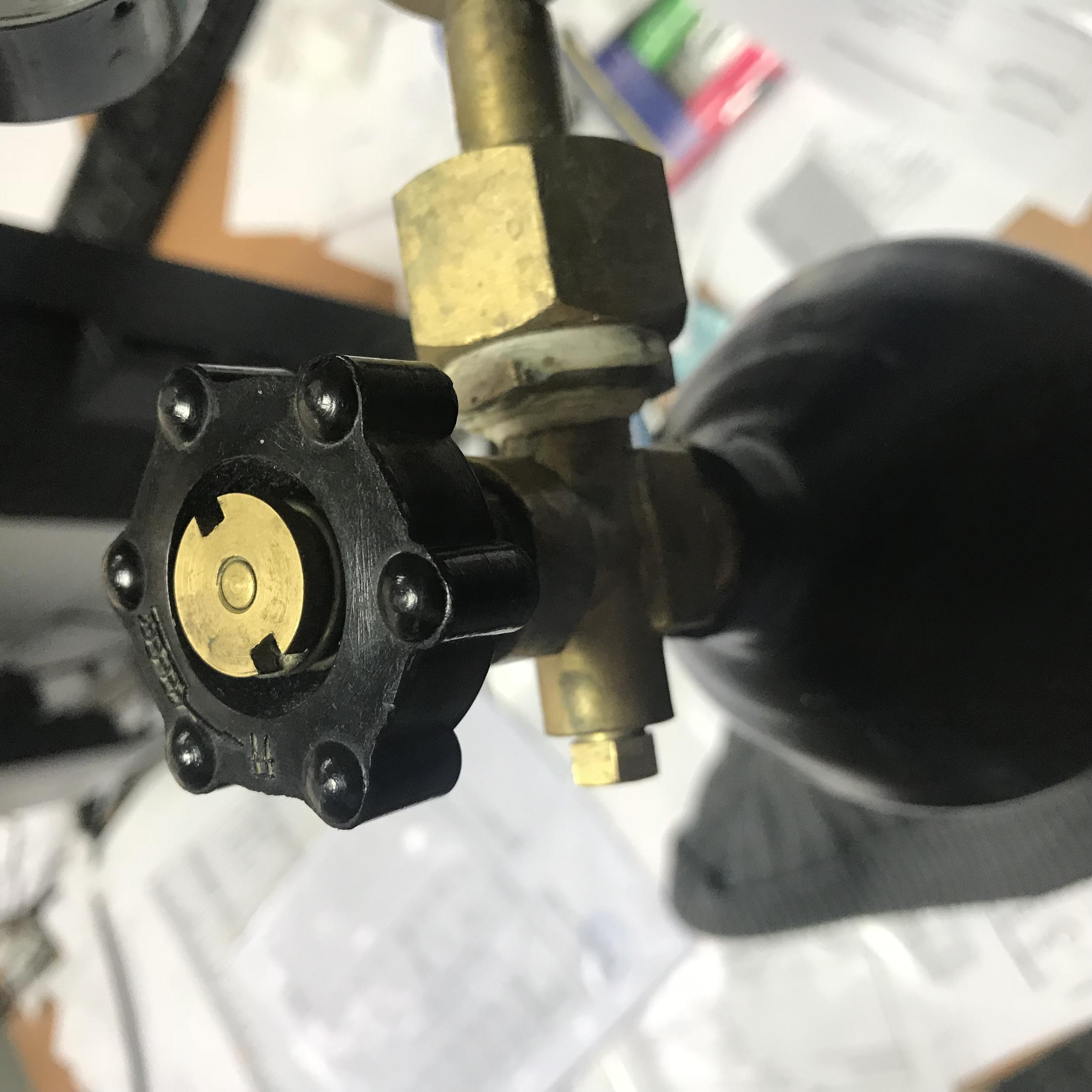 Это вентиль которым комплектуются огнетушители - они не предназначены для такой работы как у нас. Они по прокладке штока очень часто пропускают - такая конструкция. Бороться с проблемой можно подтягиванием зажимной гайки или заменой самой прокладки, но это полумера т.к. буквально через 5-10 открываний-закрываний проблема возвращается.