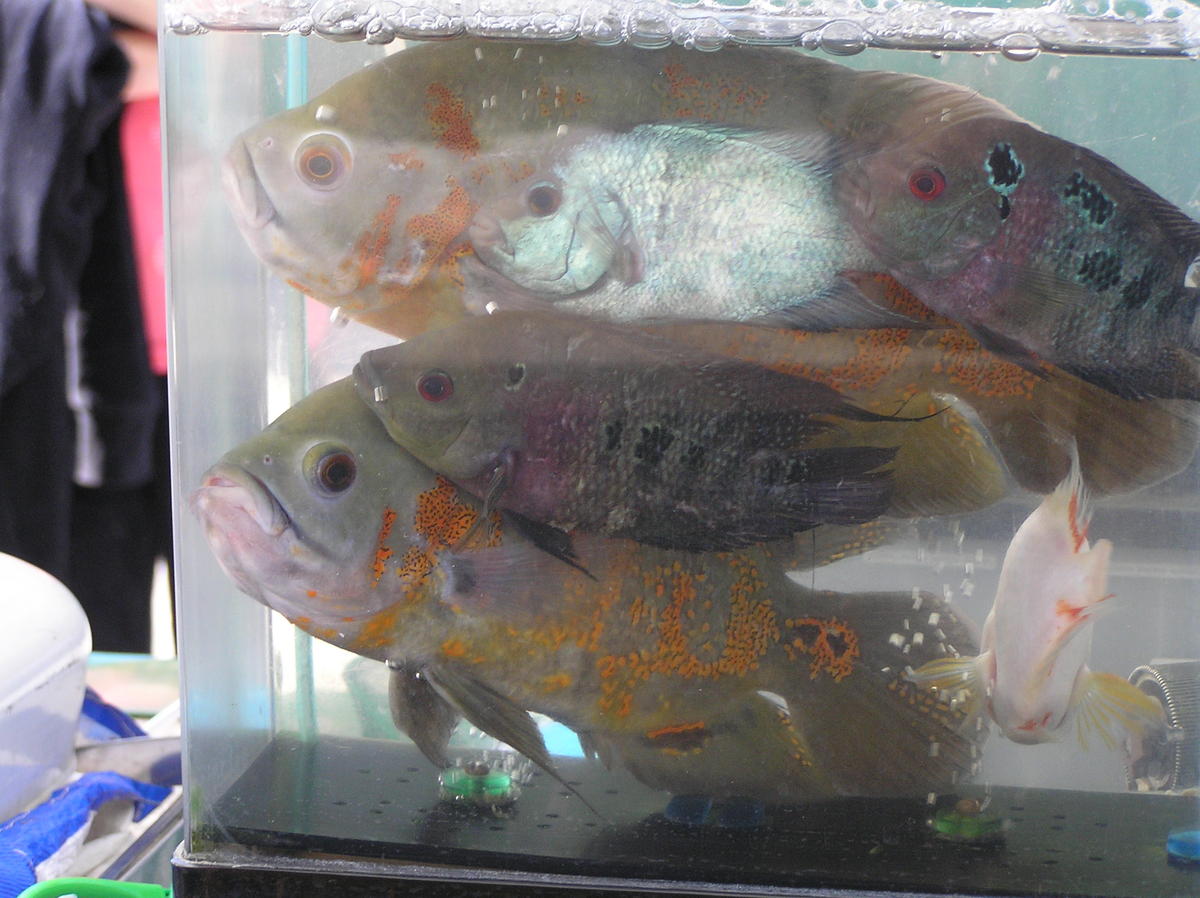 Погода сегодня была отличная и многие целыми семьями приехали на птичку.Немного фото с Харьковской Птички.Классные рубиновые,флаговые,санта -клаус и множ.других меченосцев,пецилий у Виктора.Из экзотов для меня удивительны -панцирные щуки,несколько видов рыбы -нож.Сомы,дискусы Андрея Туруева.И еще,еще...В общем, судите сами по этим немногим фото.....