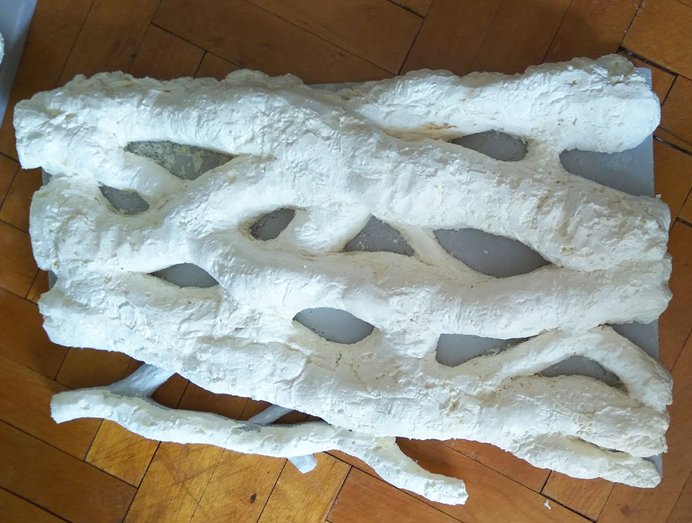 Піна на великій частині soudal з ковпачком-пістолетом. Дуже сподобалась у роботі - просто і легко створився малюнок коренів і плюс фактура класна вийшла. На меншу частину не вистачило, докупив, іншу, що попала під руку - результат не дуже потішив - лагала якоюсь стрічкою, важко було контролювати вихід. Ліпив руками і ножем.