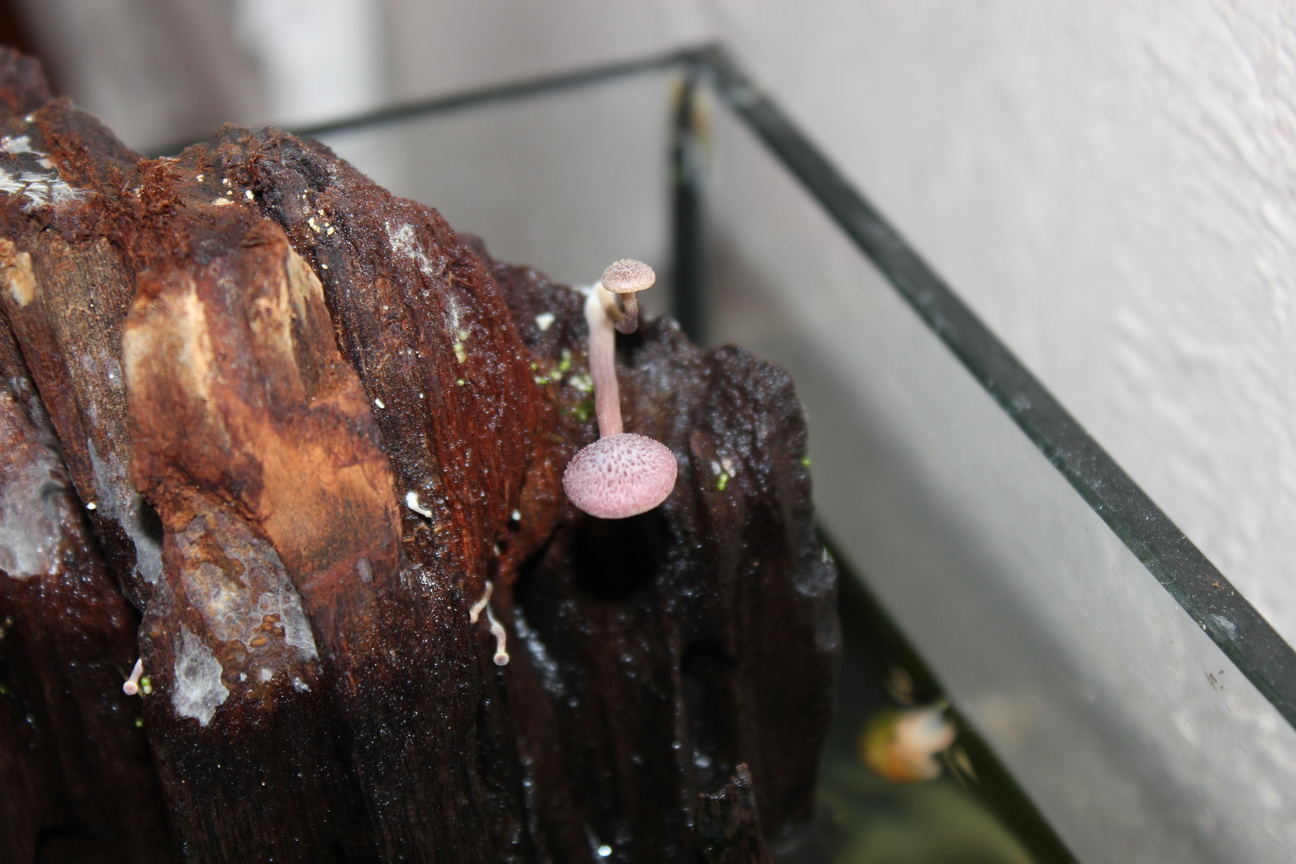 На настоящий опенок смахивает или на чешуйчатку какую-нибудь. Как оно для рыб не знаю, но большинство грибов при большом их количестве сказываются на рыбах отрицательно. Для предотвращения подобных случаев коряги пред помещением в аквариум тщательно обрабатывают варят в содовом, солевом растворе (уже не помню точно в чем и сколько) и погружают в воду полностью. Торчащие из воды части - посадочная площадка для спор.