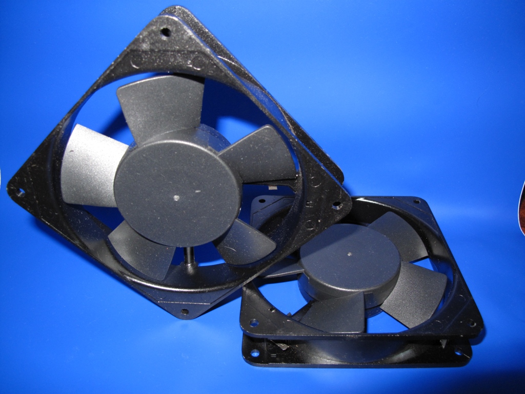 Данный лот состоит из двух куллеров в алюминиевом корпусе, размером 120х120х25 мм, плюс в комплект входят: две декоравные решетки и несложный наборчик для подключения куллеров к сети элекропитания.